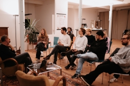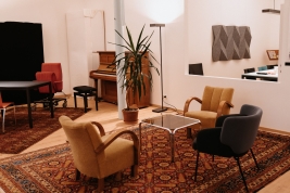 Die Einrichtung ist flexibel: Stühle, Tische und Sitzmöglichkeiten können je nach Setting angepasst oder entfernt werden. Beamer und Leinwand sind vorhanden, ebenso ein professionelles Soundsystem, sowie ein akustisch getrennter Konferenzraum. Die warme, minimalistische Gestaltung lädt zu Achtsamkeit, Präsenz und authentischer Begegnung ein.