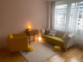 Der Praxisraum befindet sich in einer Gemeinschaftspraxis für Psychotherapie in der Wilhelm-Greil-Str. 21 in Innsbruck. Im Gebäude gibt es viele Berufsgruppen von diversen FachärztInnen bis hin zur Steuerberatung. Das ermöglicht eine ruhige und anonyme Stimmung im Haus. Außer mir arbeitet noch eine Psychotherapeutin in diesem Raum.